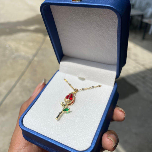Collar tulipan rojo + Estuche de cuero azul gratis