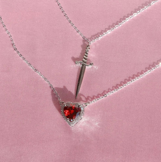 Collar Espada Corazon Pareja + + Caja Premium Gratis