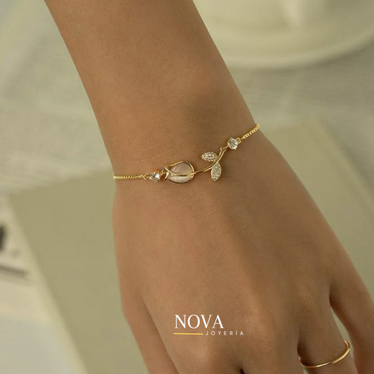 Pulsera Tulipán bañado | Baño de Oro + Caja de Regalo Gratis✨